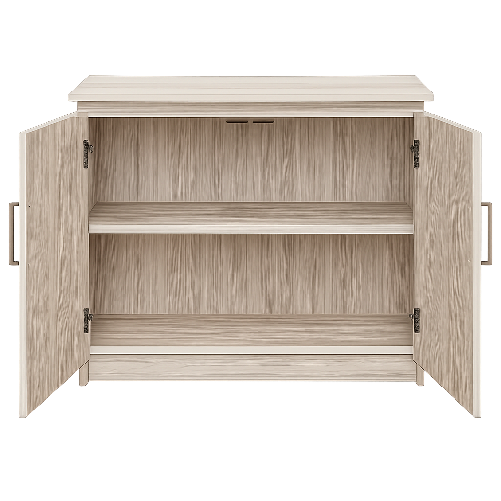 • 🚪 Storage: Two swing doors with an internal shelf for organized storage